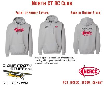 The Northern Connecticut Radio Control Club (NCRCC) apparel and merchandise with the club logo is available for purchase from planecrazystuff.com. As advertised in Model Aviation magazine, this small business in Michigan now offers flying club merchandise for you to order, while NCRCC earns 7% of sales. Customization is available, adding text to your items. Wearing this apparel while attending events let people know the well-earned pride you have in NCRCC!
